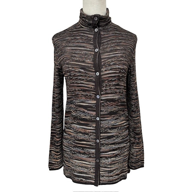 古着 ミッソーニ MISSONI 長袖 カーディガン クリーニング済み シルク レーヨン混 ブラウン系 レディース Mサイズ 相当