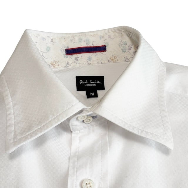 古着 ポールスミス PaulSmith 長袖ワイシャツ クリーニング済み 白 小花柄 メンズ Mサイズ