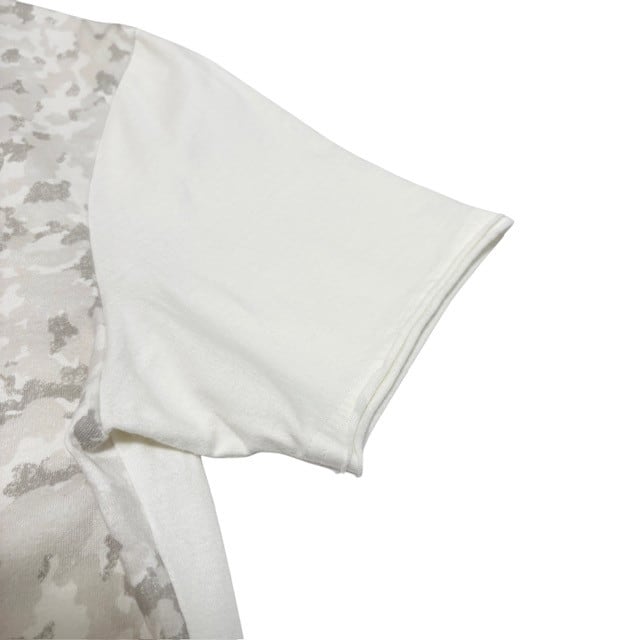フロントのモノトーンのカモフラ柄がクールな印象の半袖Tシャツです。