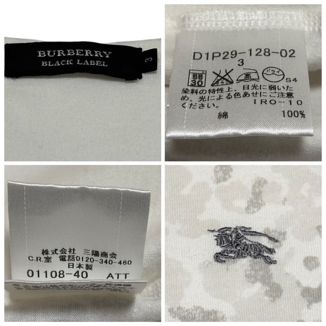 古着 バーバリーブラックレーベル BURBERRY BLACKLABEL 半袖 Tシャツ クリーニング済み 白 カモフラ柄 メンズ サイズ3