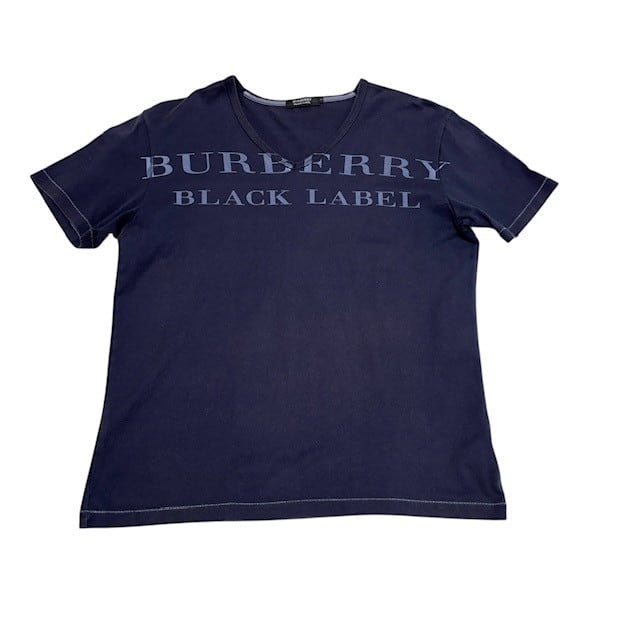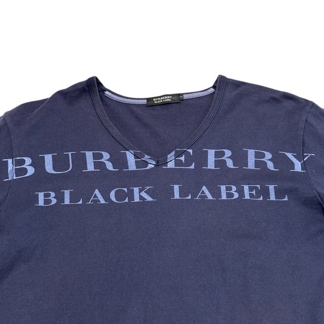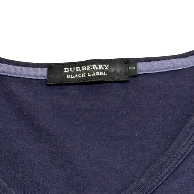 古着 バーバリーブラックレーベル BURBERRY BLACKLABEL 半袖 Tシャツ クリーニング済み Vネック ネイビー メンズ サイズ2