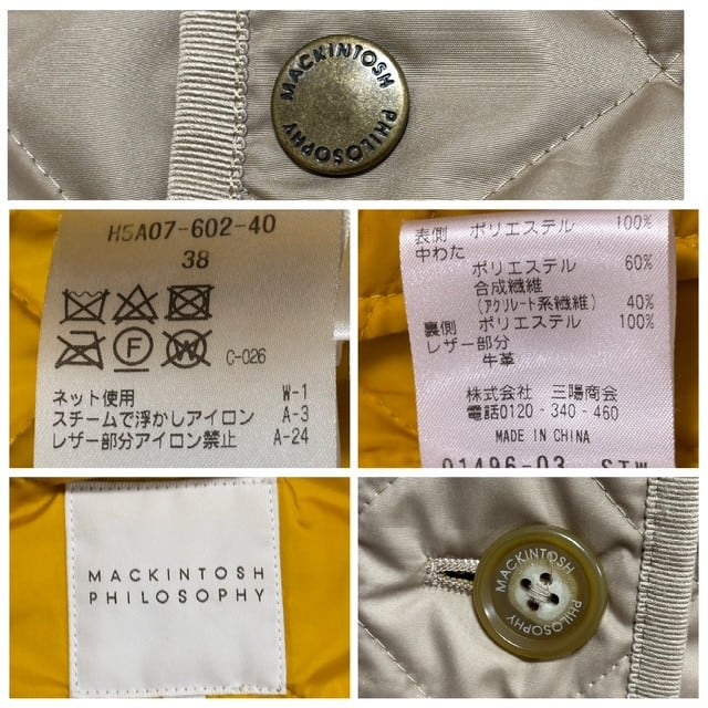 古着 マッキントッシュフィロソフィー キルティングコート クリーニング済み ベージュ×イエロー レディース サイズ38