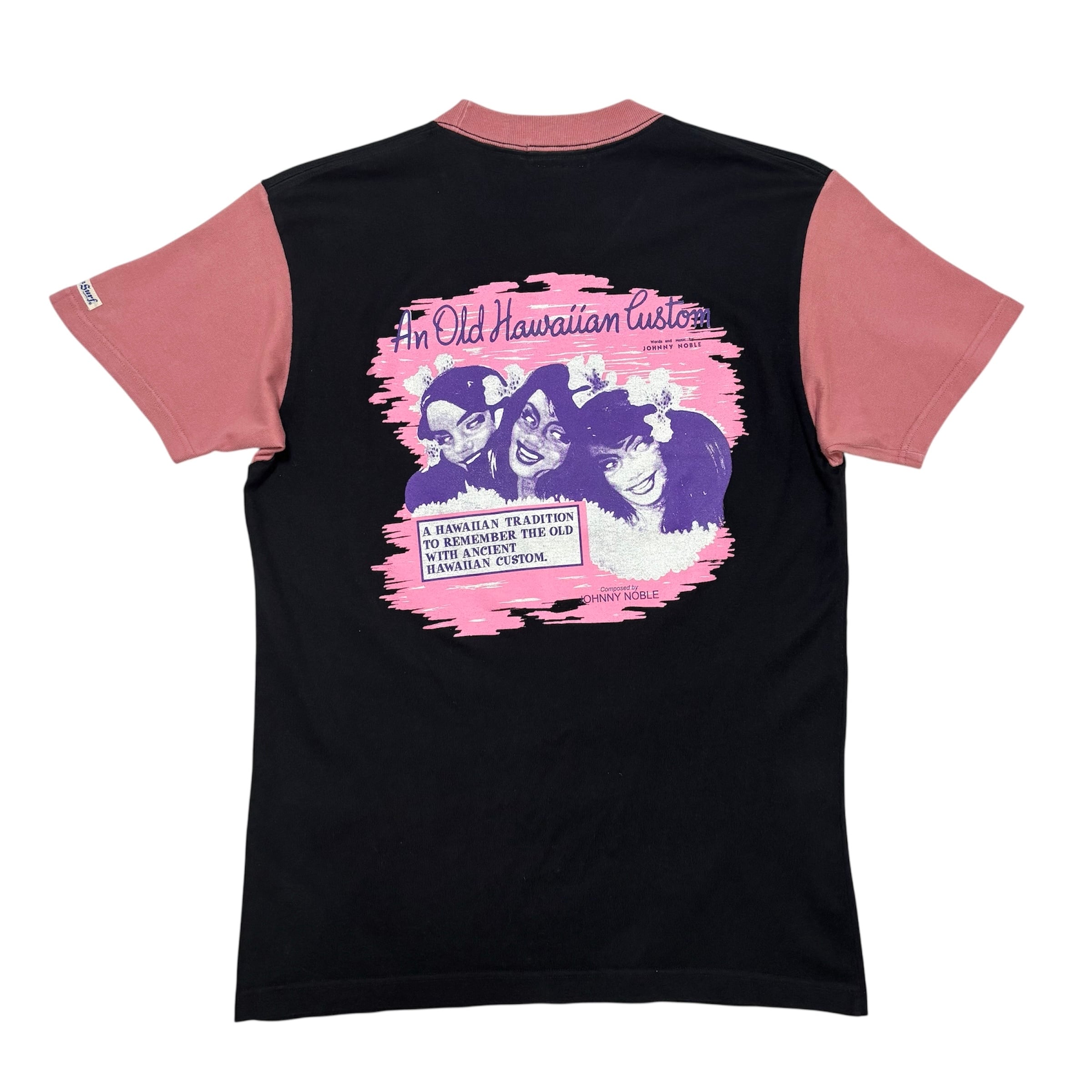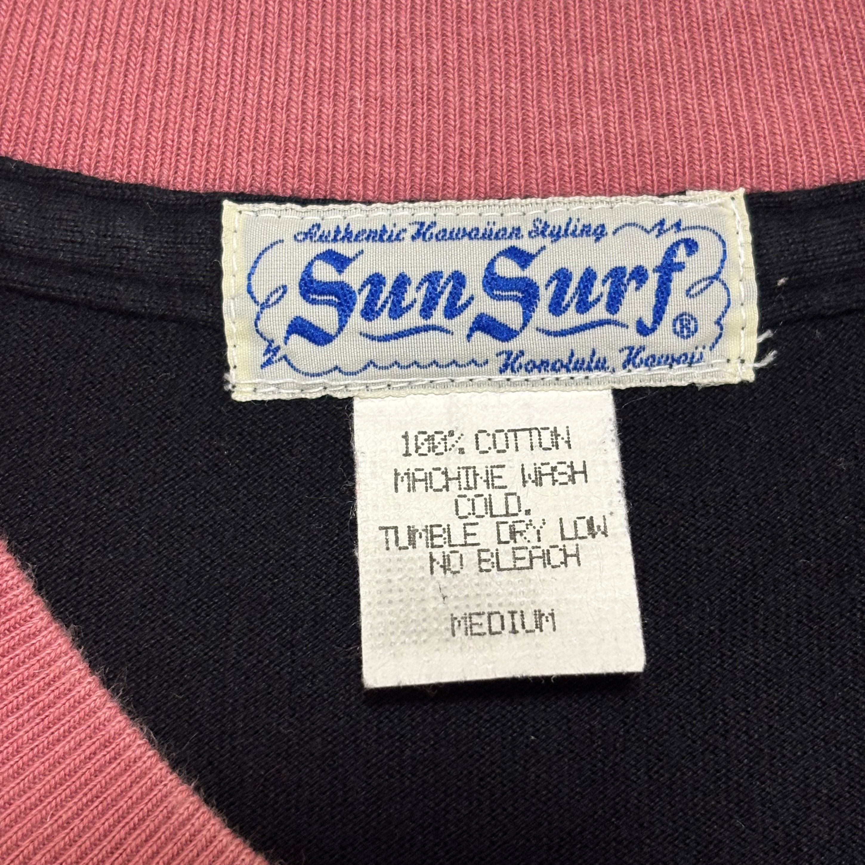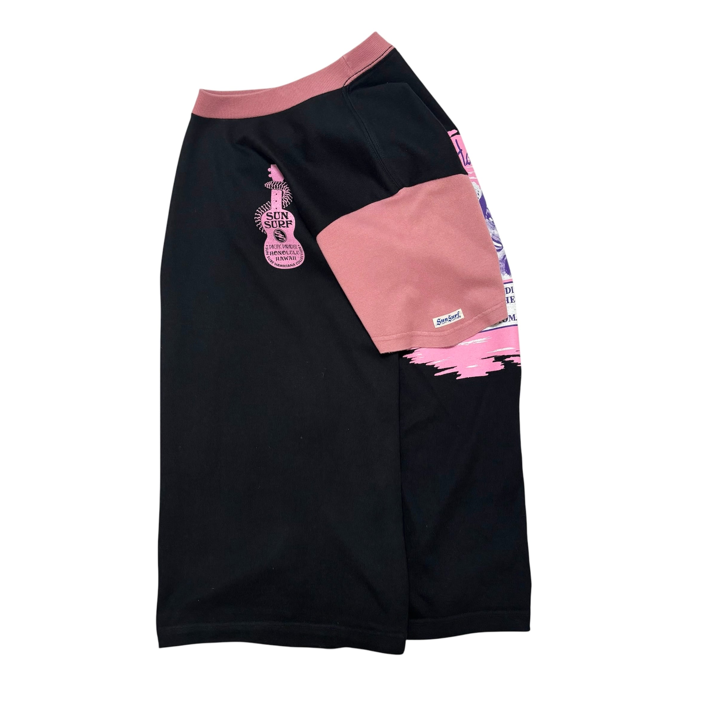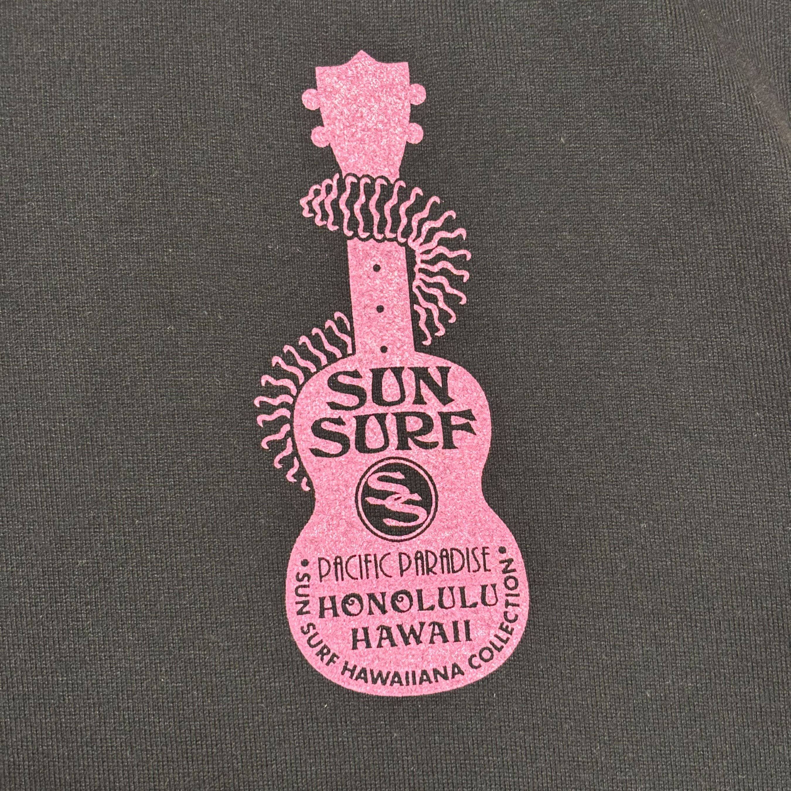 古着 サンサーフ SUNSURF Tシャツ クリーニング済み ハワイアングラフィック メンズM 黒 ピンク