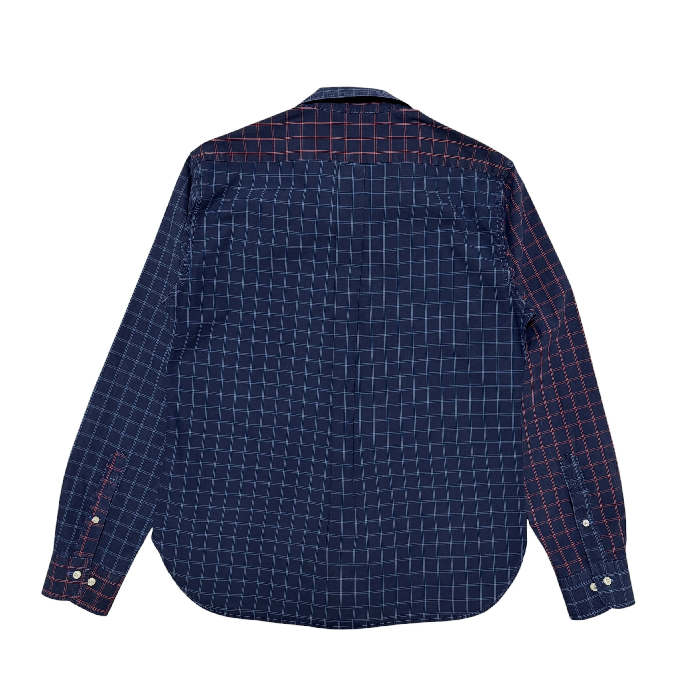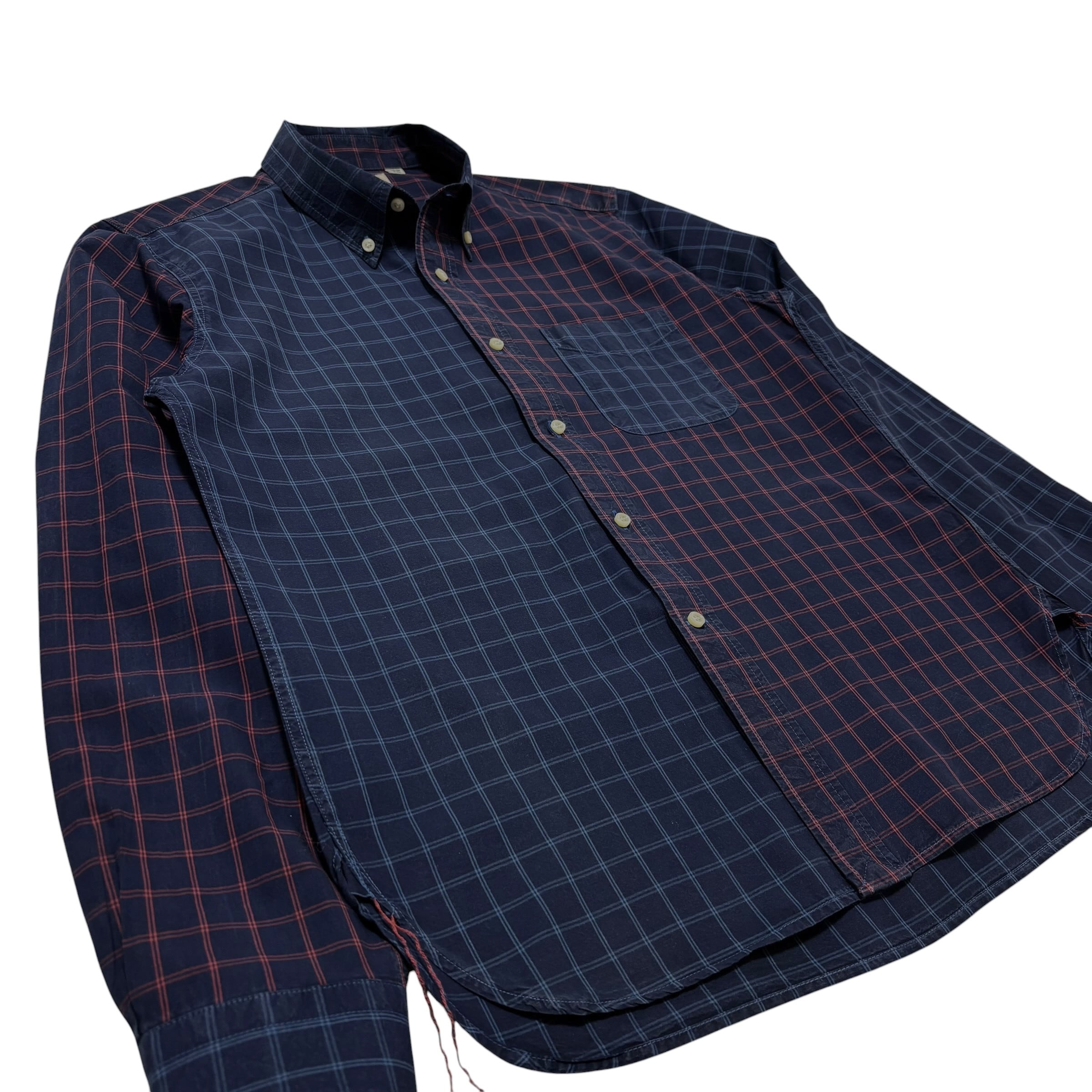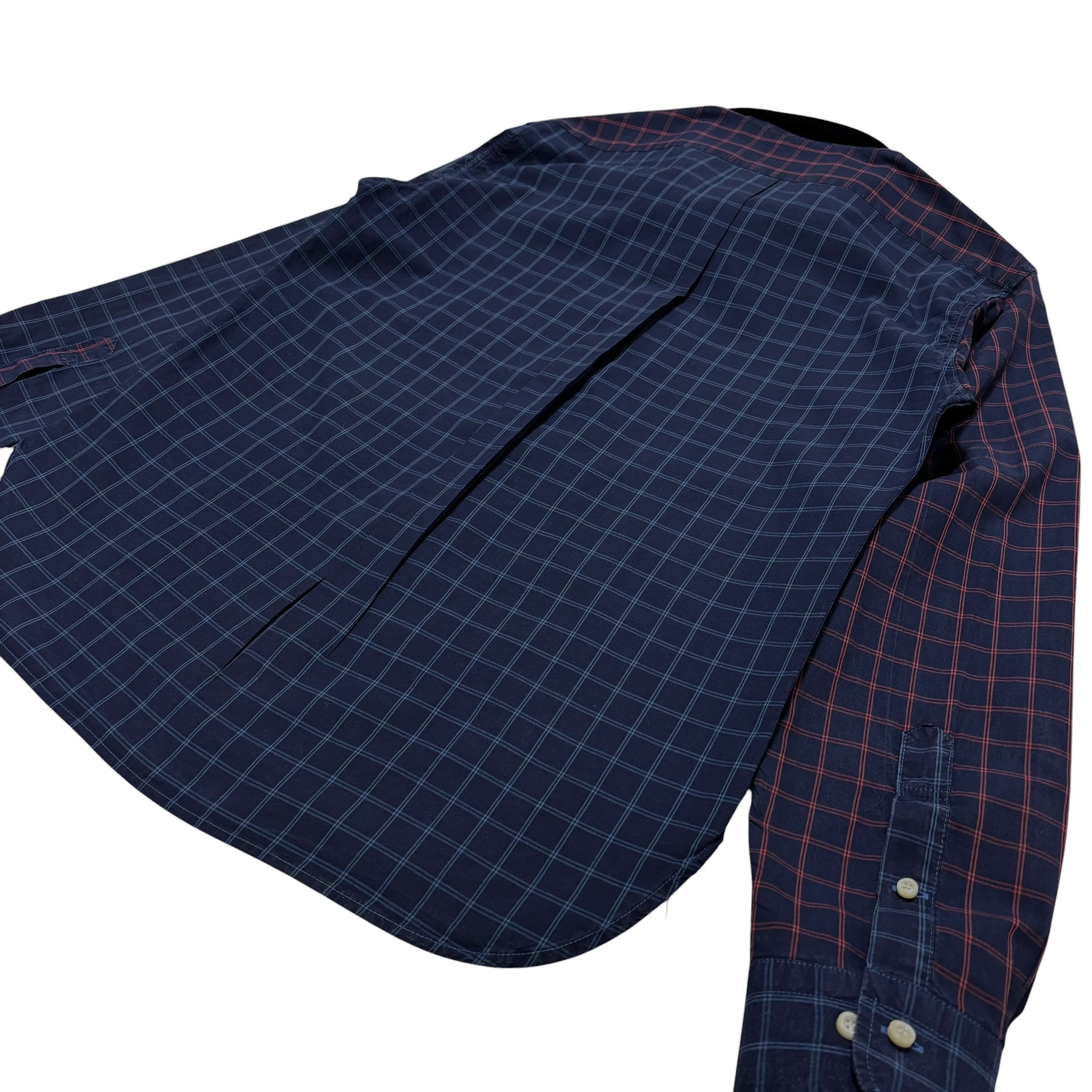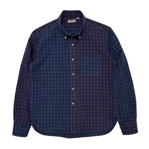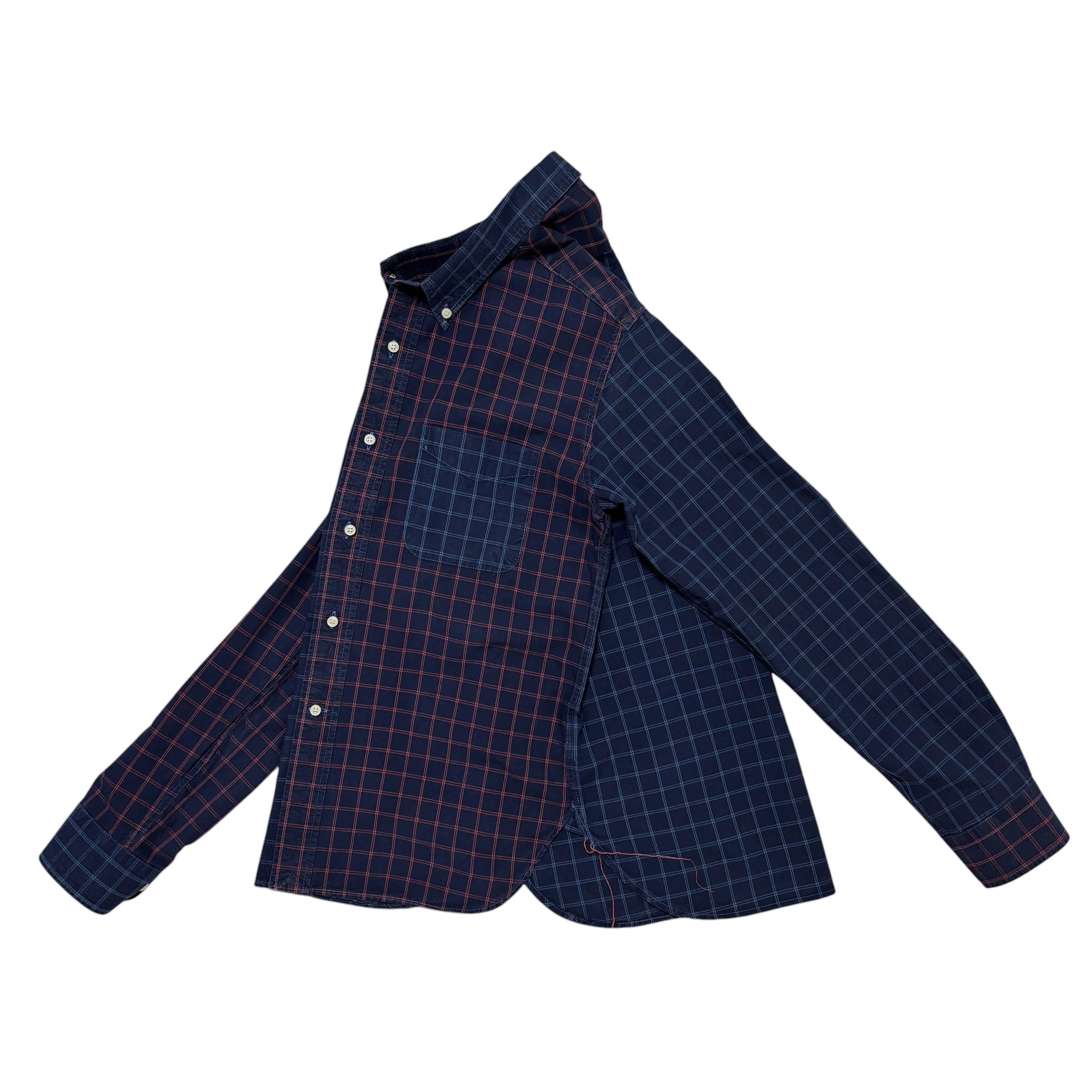 左右で異なるチェック柄を配した切り替えデザインが、落ち着いた色合いの中に控えめなアクセントを添えます。