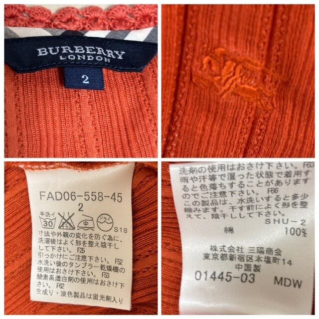 古着 バーバリーロンドン BURBERRY LONDON 半袖 カットソー クリーニング済み オレンジ レディース サイズ2