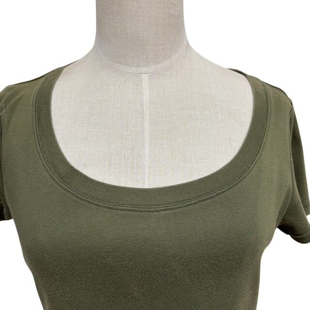 オリーブグリーンをベースにした、やや広めのラウンドネック仕様。