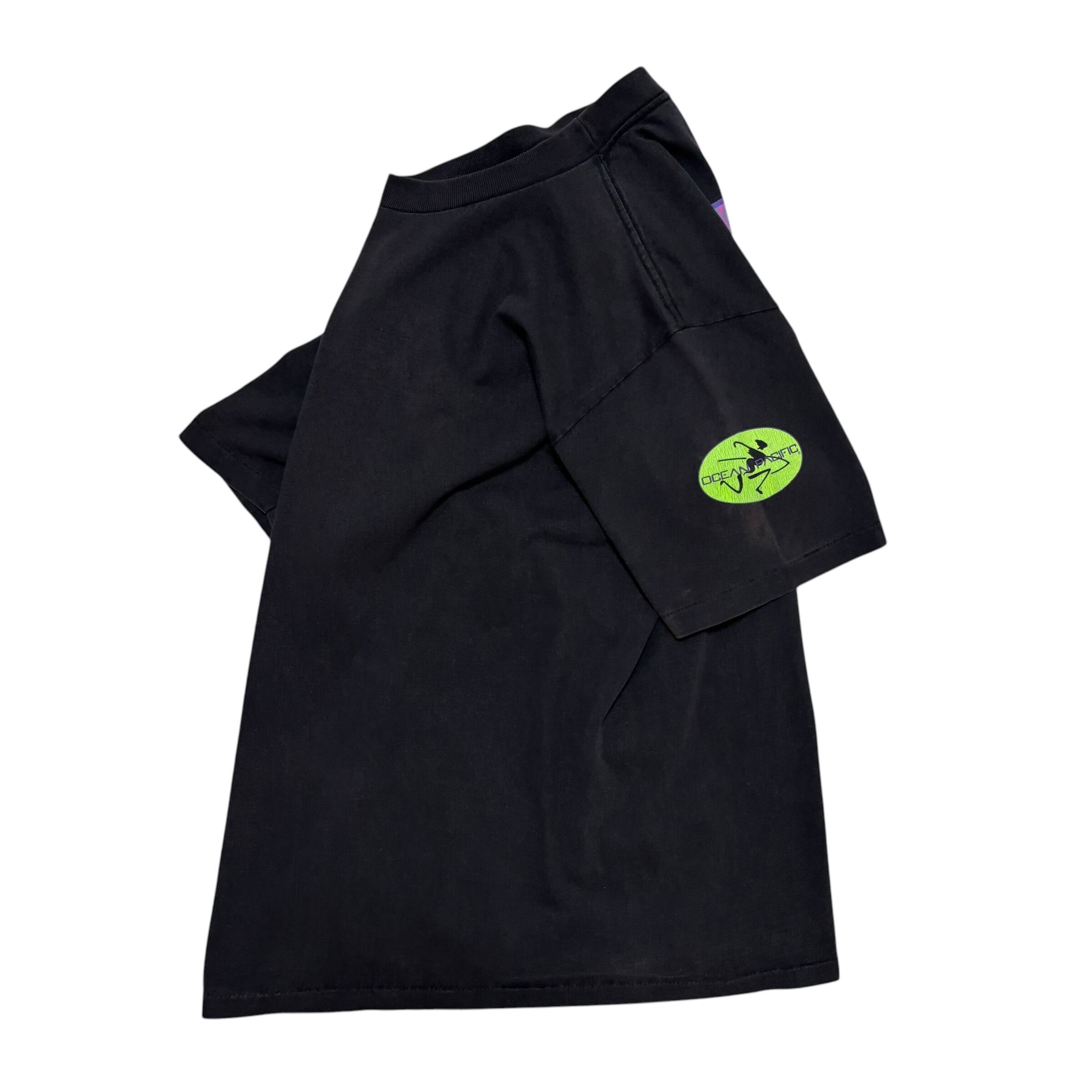 古着 オーシャンパシフィック ocean pacific OP 背面プリント Tシャツ クリーニング済み 1989年 USA製 メンズL 黒