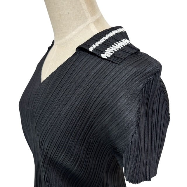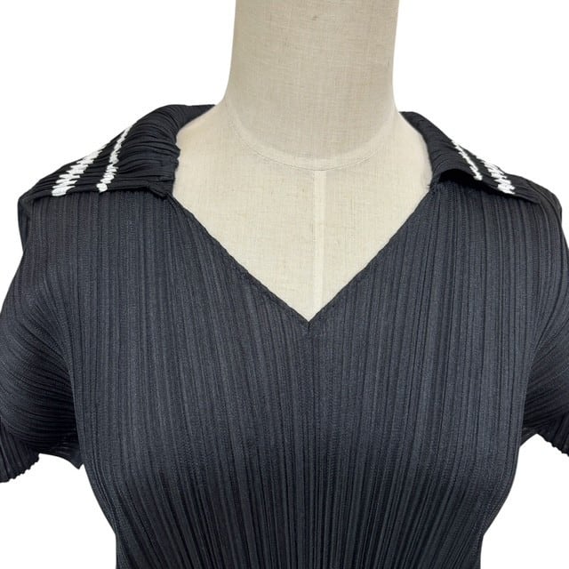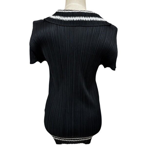古着 プリーツプリーズ 半袖 チュニック カットソー クリーニング済み イッセイミヤケ 黒×白 レディース サイズ3