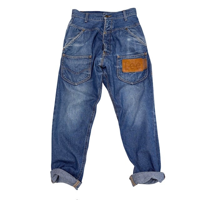 古着 LEE × mercibeacoup サルエル デニムパンツ クリーニング済み 後ろ前デザイン メンズ Sサイズ