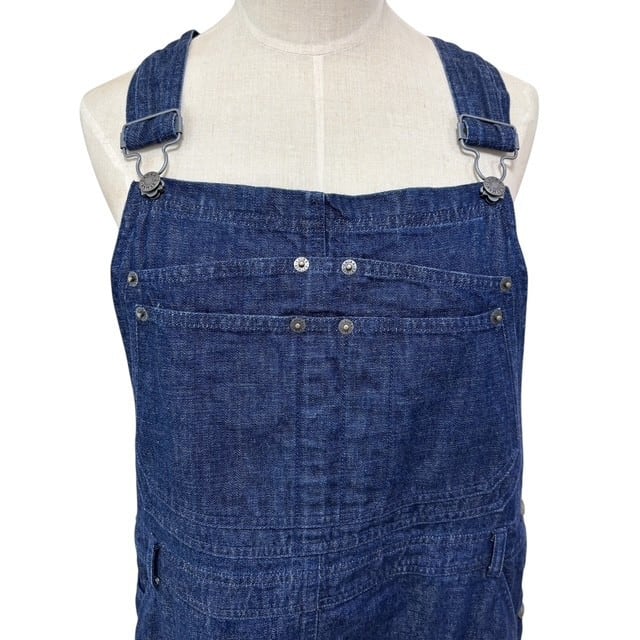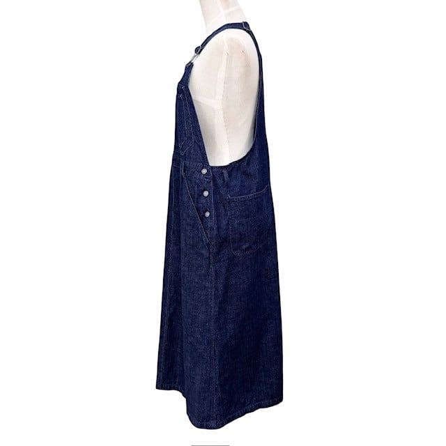 張りのあるデニム地のサロペット/ジャンパースカート。