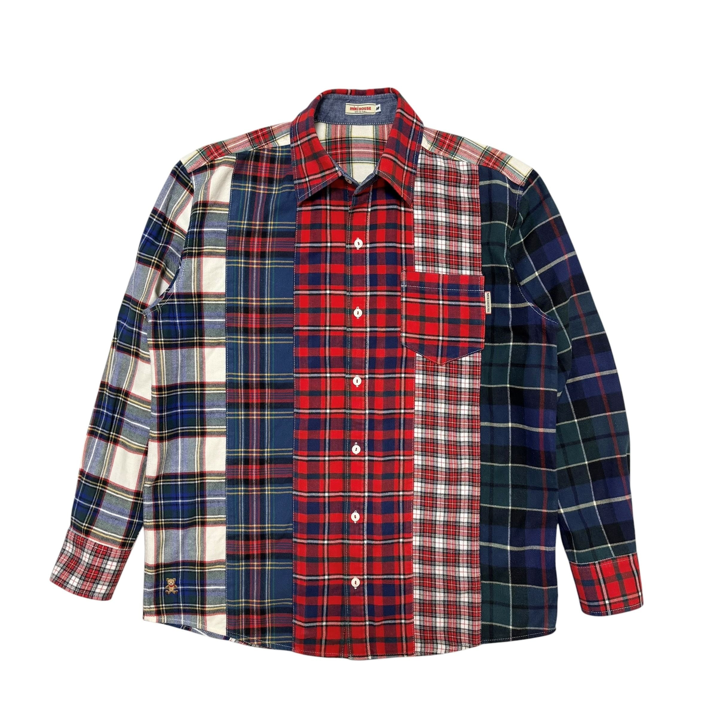 古着 ミキハウス MIKI HOUSE パッチワーク風 ネルシャツ 長袖 チェックシャツ クリーニング済み メンズM