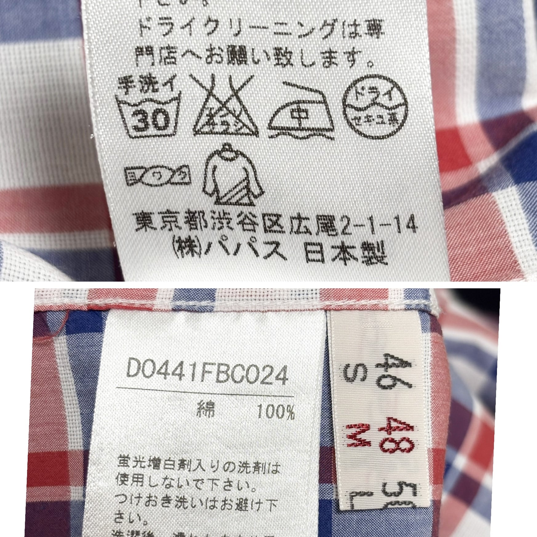 古着 パパス Papas 長袖シャツ ボタンダウンシャツ チェック柄 クリーニング済み メンズ48M DO441FBCO24
