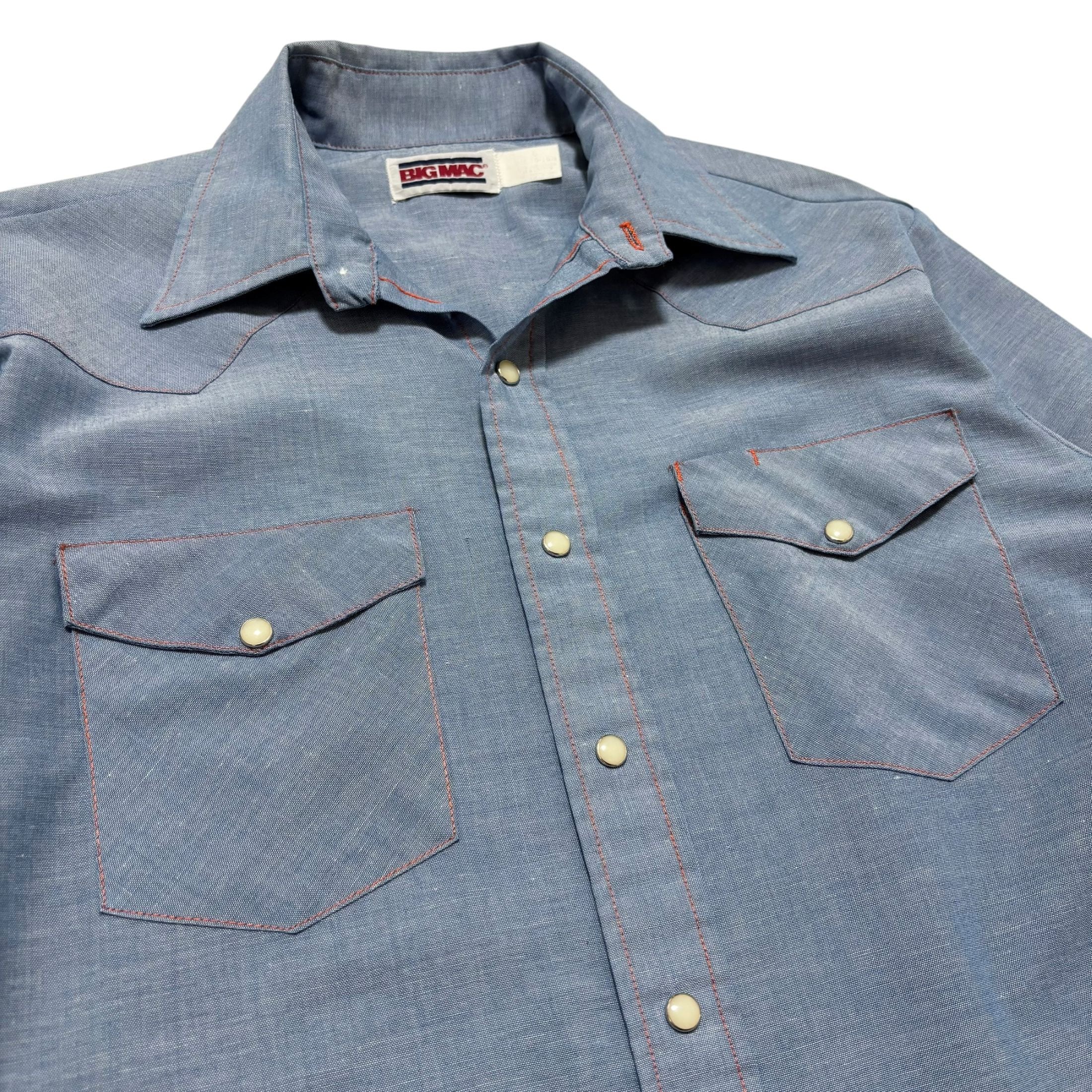 古着 BIG MAC ビッグマック シャンブレーシャツ ウエスタンシャツ クリーニング済み 80s USA製 メンズL 16-16 1/2