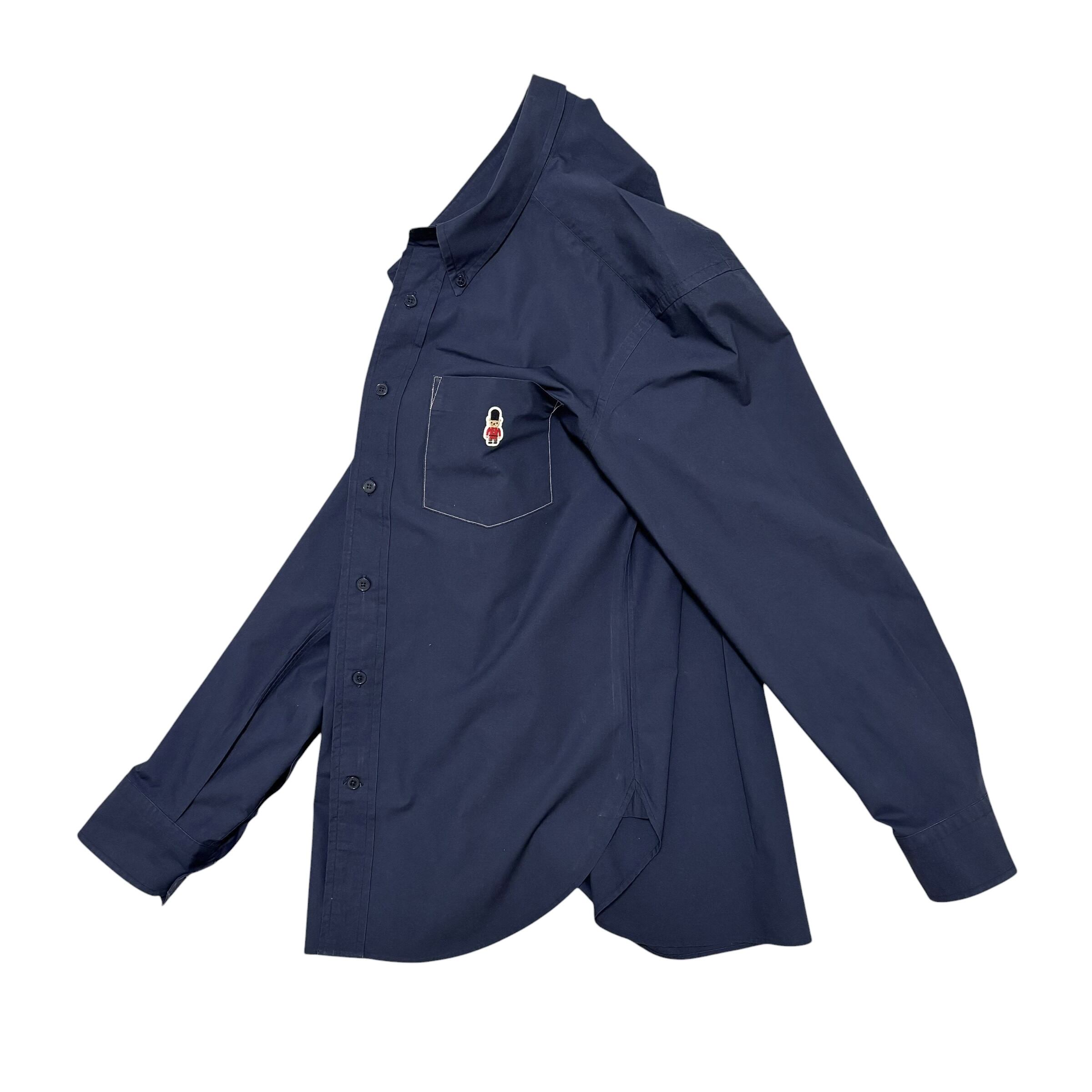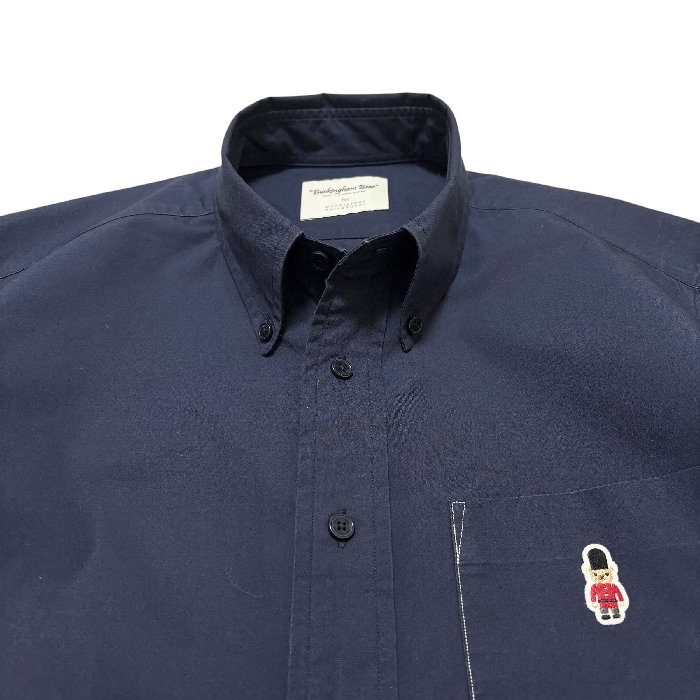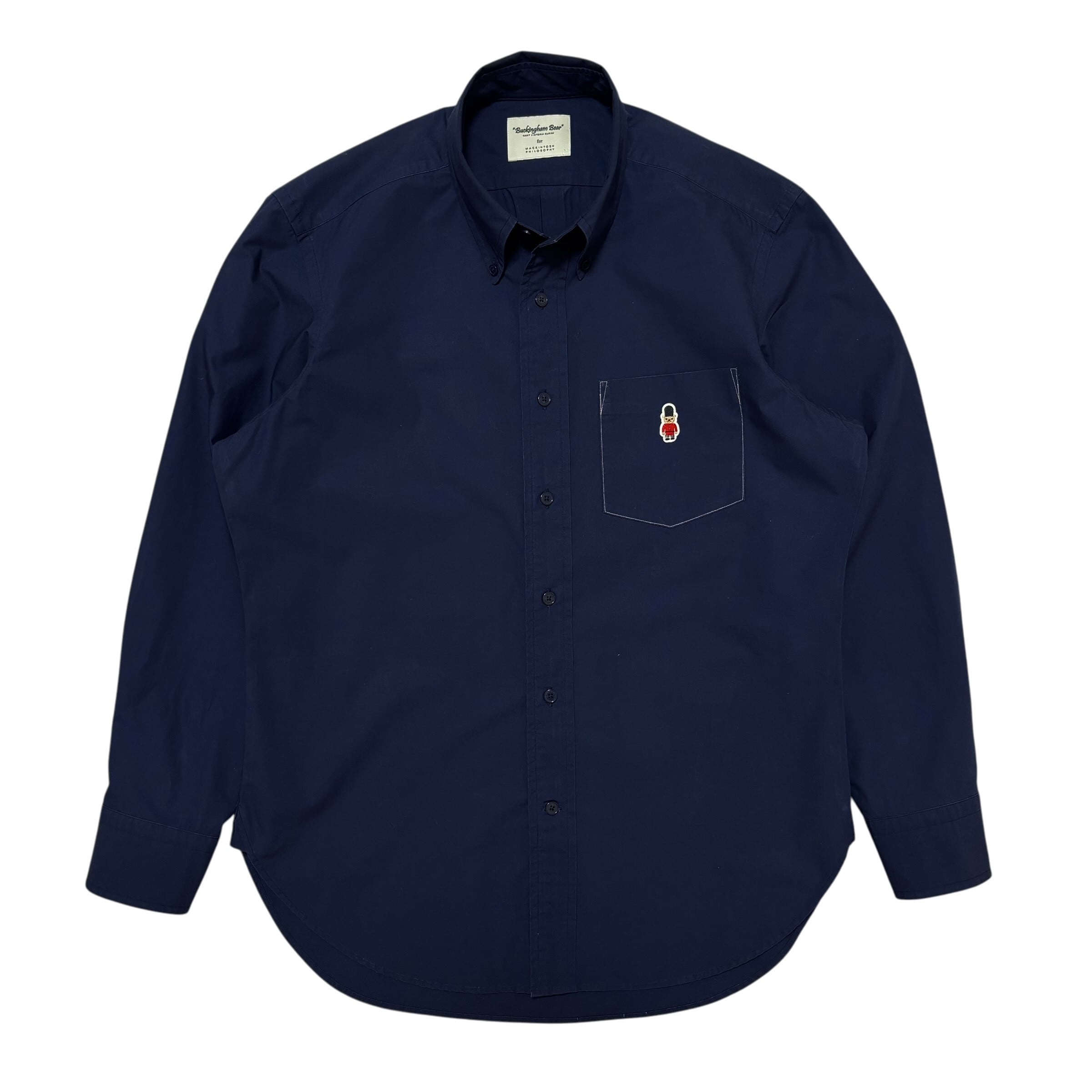 胸元のバッキンガムベア刺繍がアクセントの、MACKINTOSH PHILOSOPHYのネイビーボタンダウンシャツです。