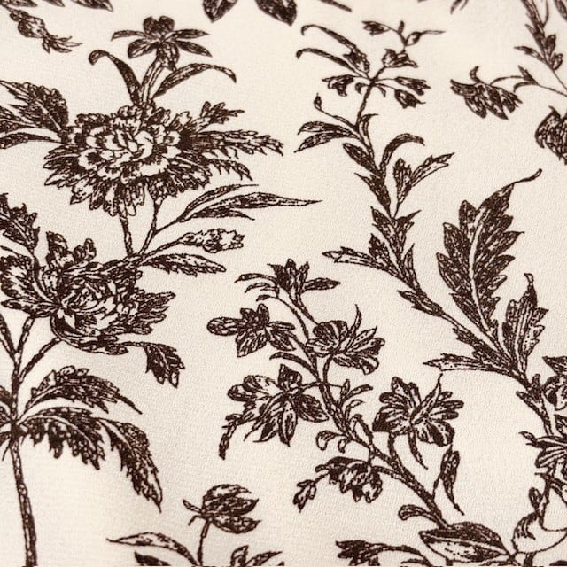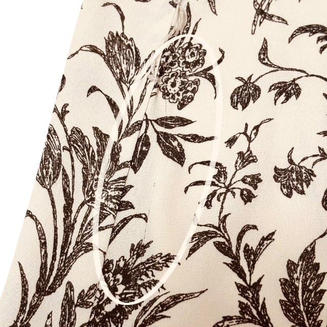 描画タッチの繊細なボタニカルがクラシックな印象のワンピースです。