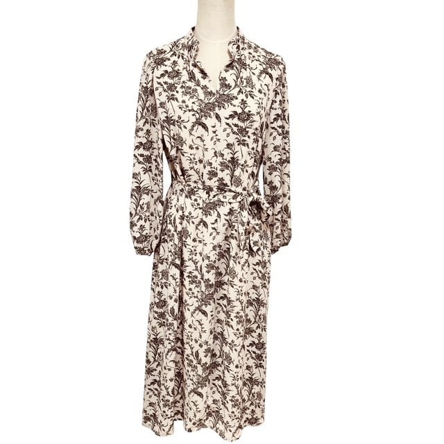 古着 ローラアシュレイ LAURA ASHLEY 長袖 ワンピース クリーニング済み ボタニカル柄 ライトベージュ レディース サイズ38