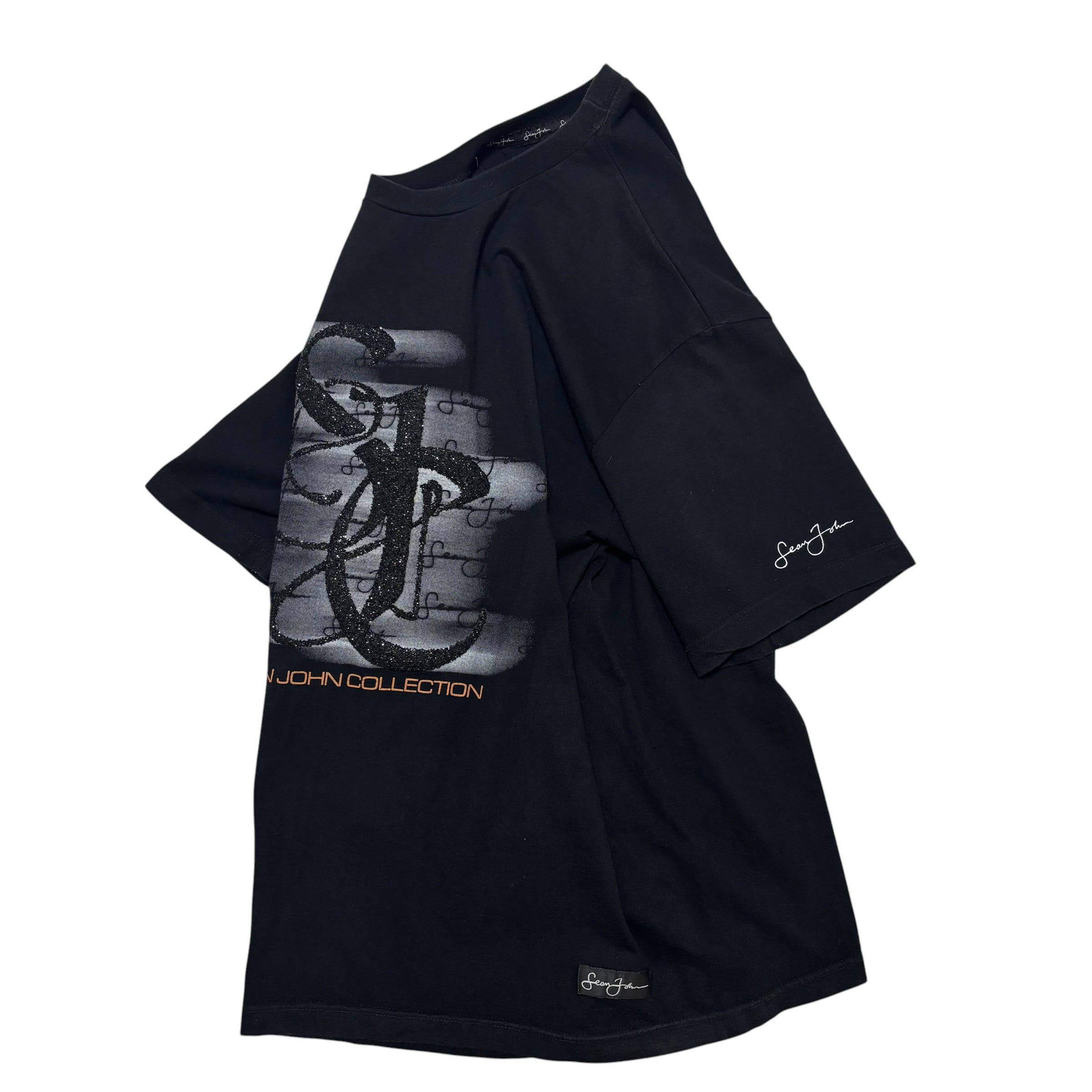 古着 ショーンジョン SEAN JOHN 半袖 Tシャツ クリーニング済み 装飾ロゴ メンズL 実寸XL相当 ブラック B系