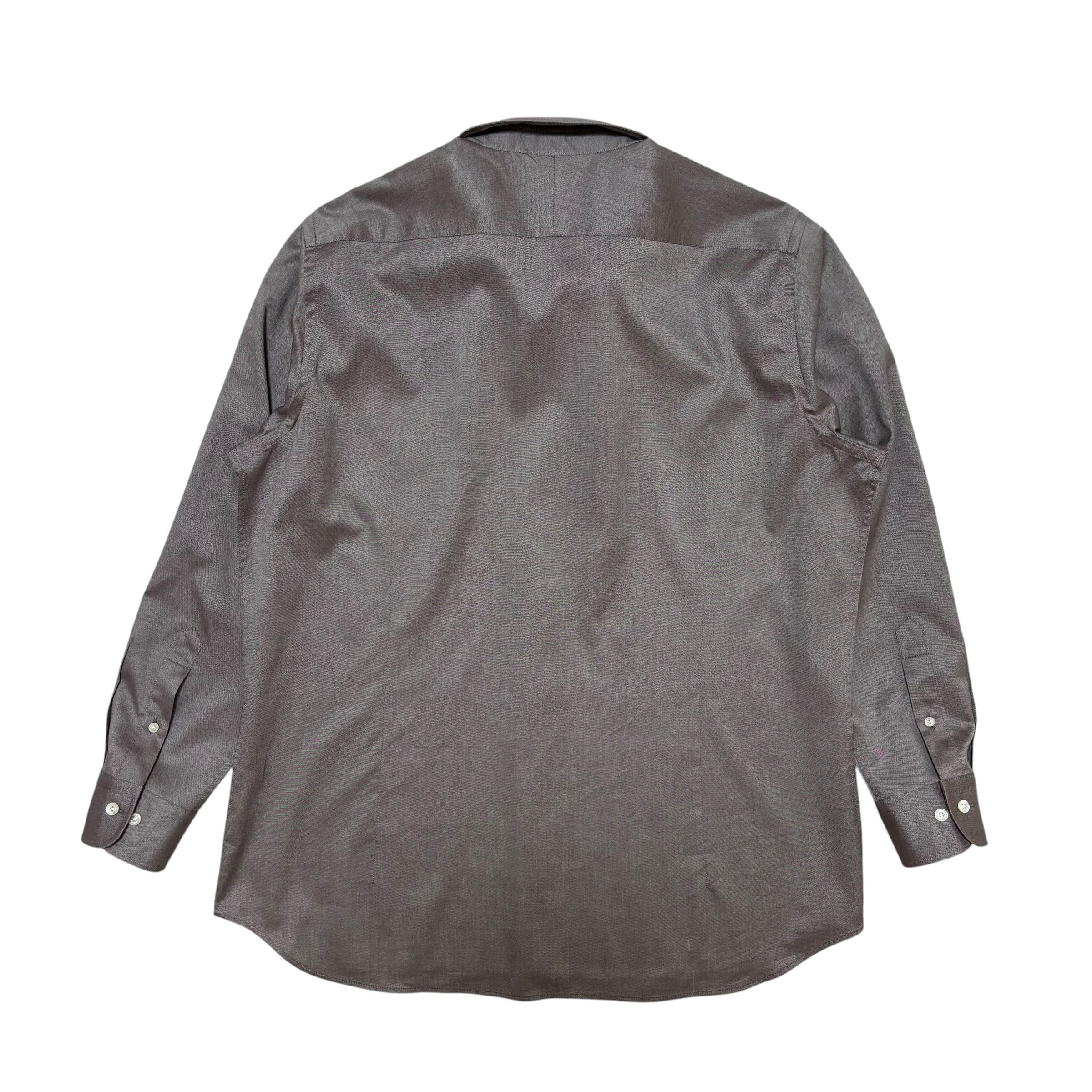 落ち着いたグレーのコットンシャツ。