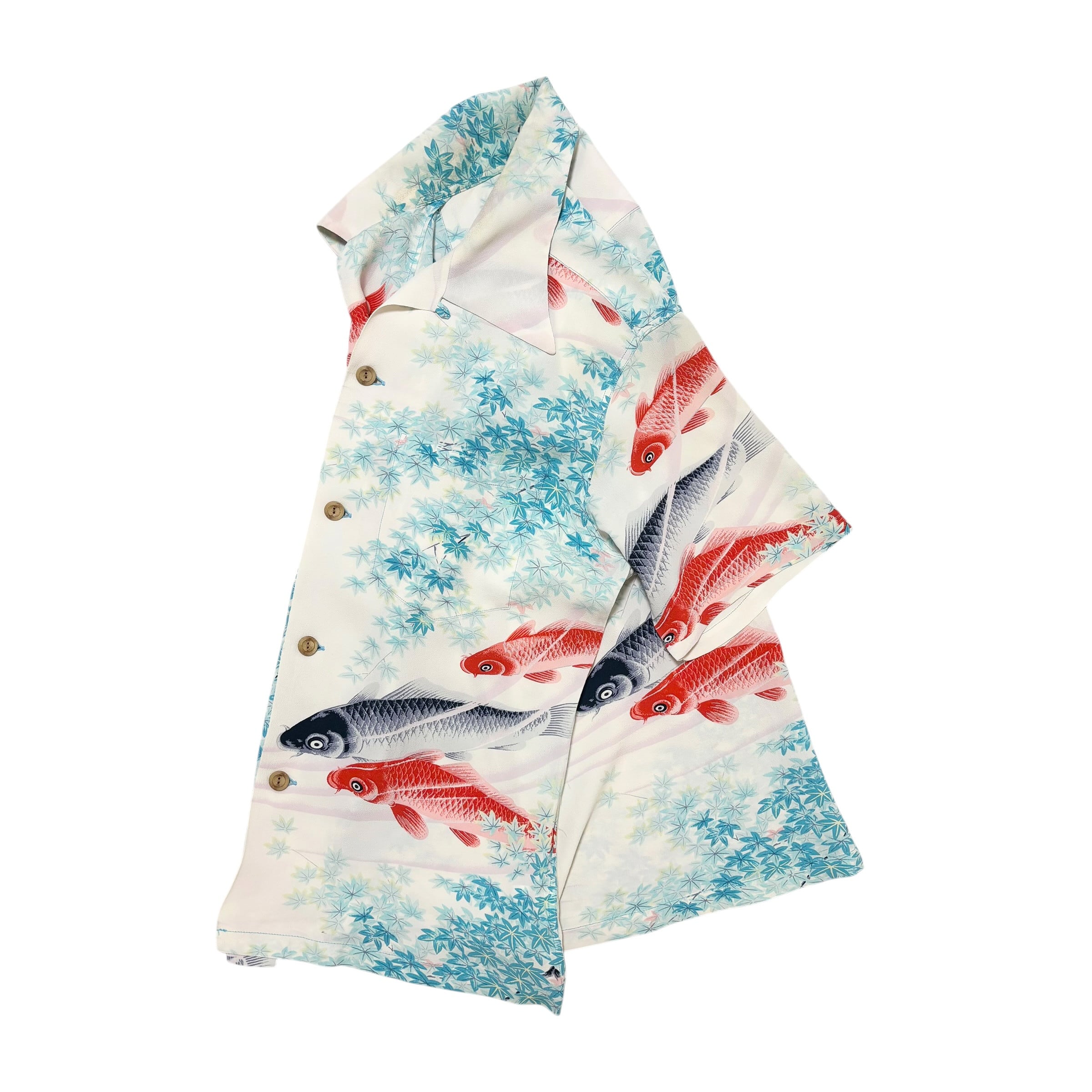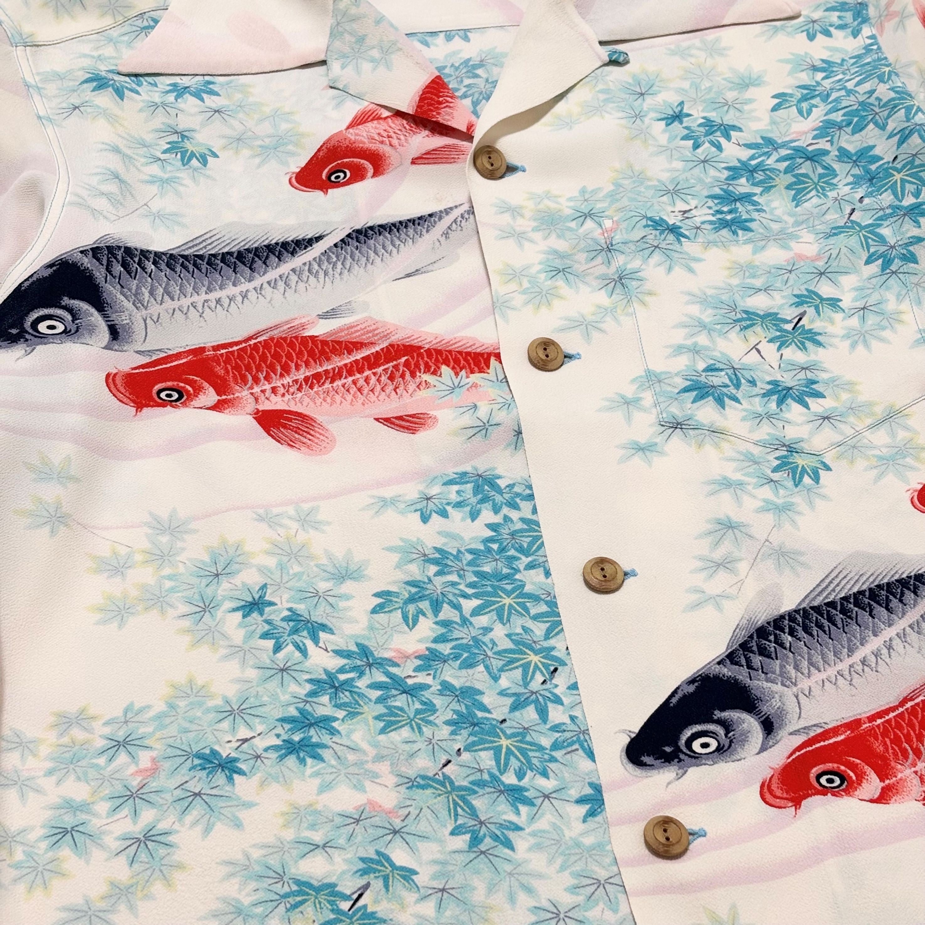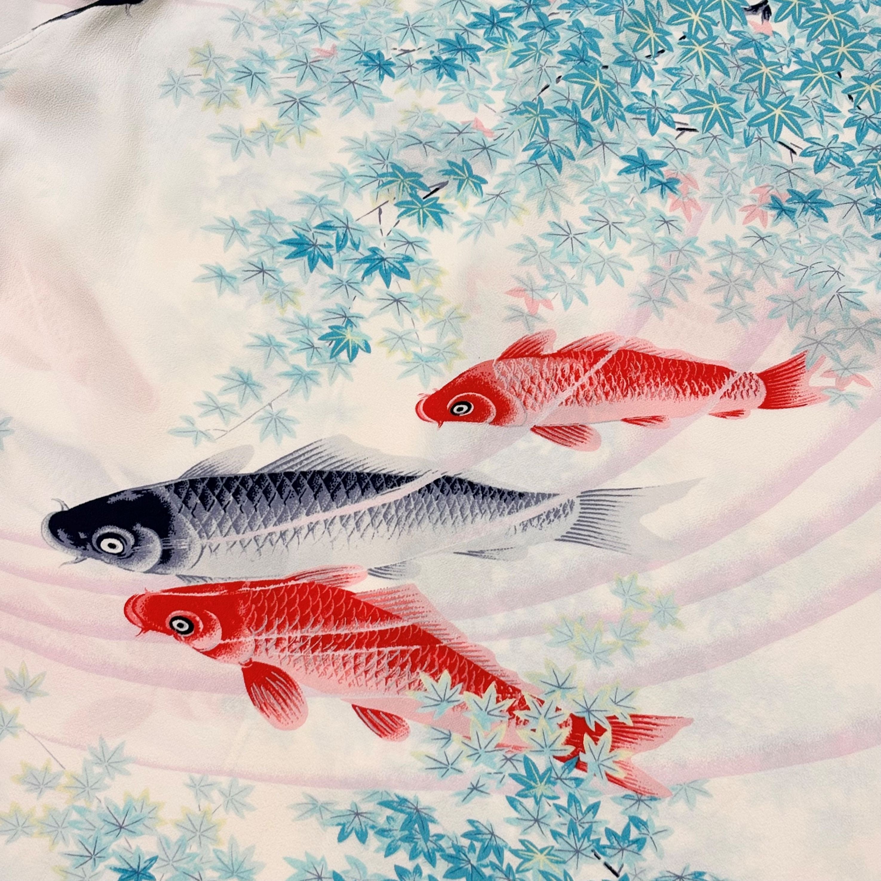 レーヨン100%の柔らかな生地に、錦鯉と楓葉を配した和柄が静かに映える一着です。