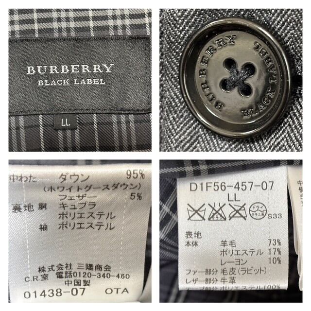 中古 バーバリーブラックレーベル BURBERRY BLACKLABEL ダウンコートファー ベルト付き ダークグレー メンズ LLサイズ