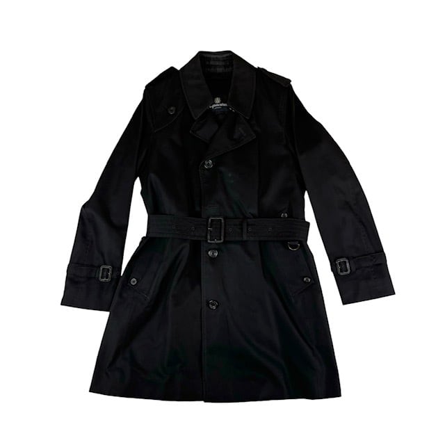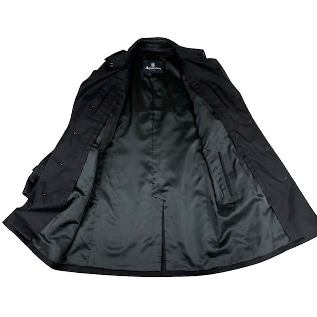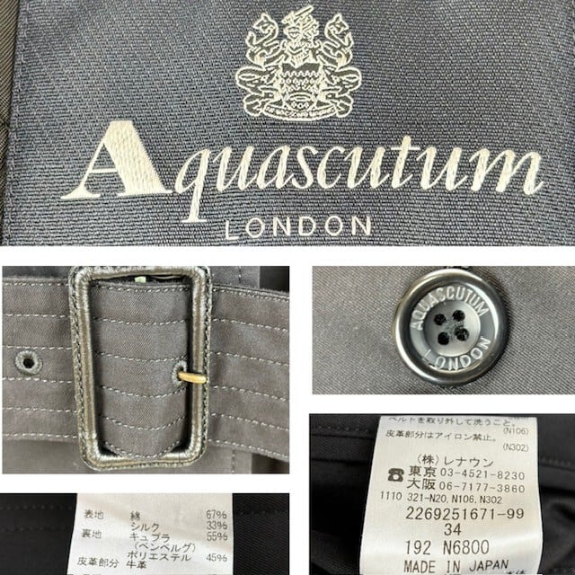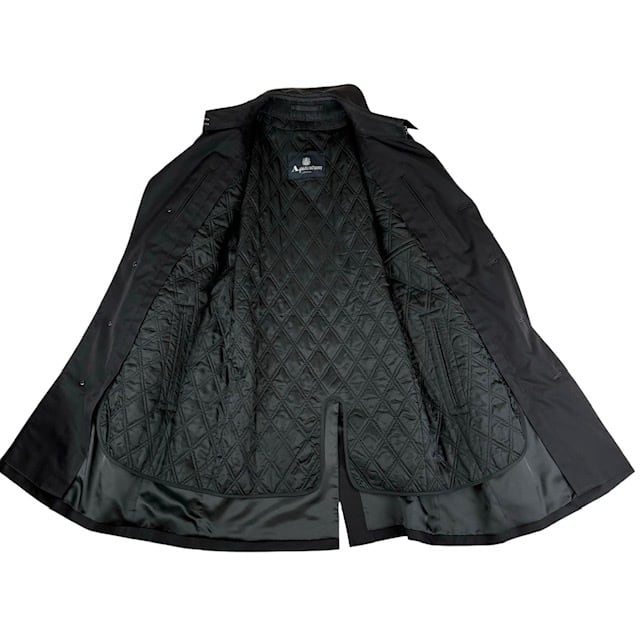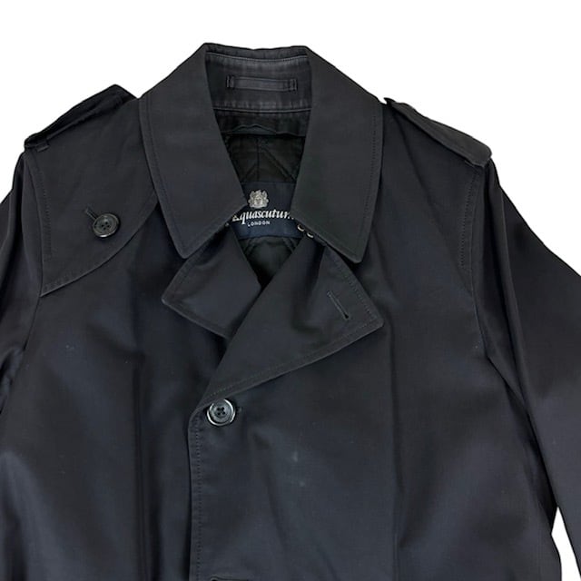 中古 アクアスキュータム Aquascutum トレンチコート 黒 シルク混 ライナー付き サイズ34 メンズ Sサイズ 相当