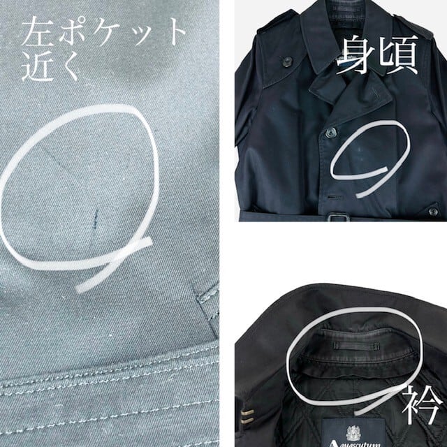 コンディションレベル・B/使用感、汚れやダメージが若干あるが、そこまで気にならない商品です。※コンディションレベルは当社独自の基準です。備考:衿内側や身頃部分に多少の色褪せが見られます。左ポケット近くに小さなキズがございます。