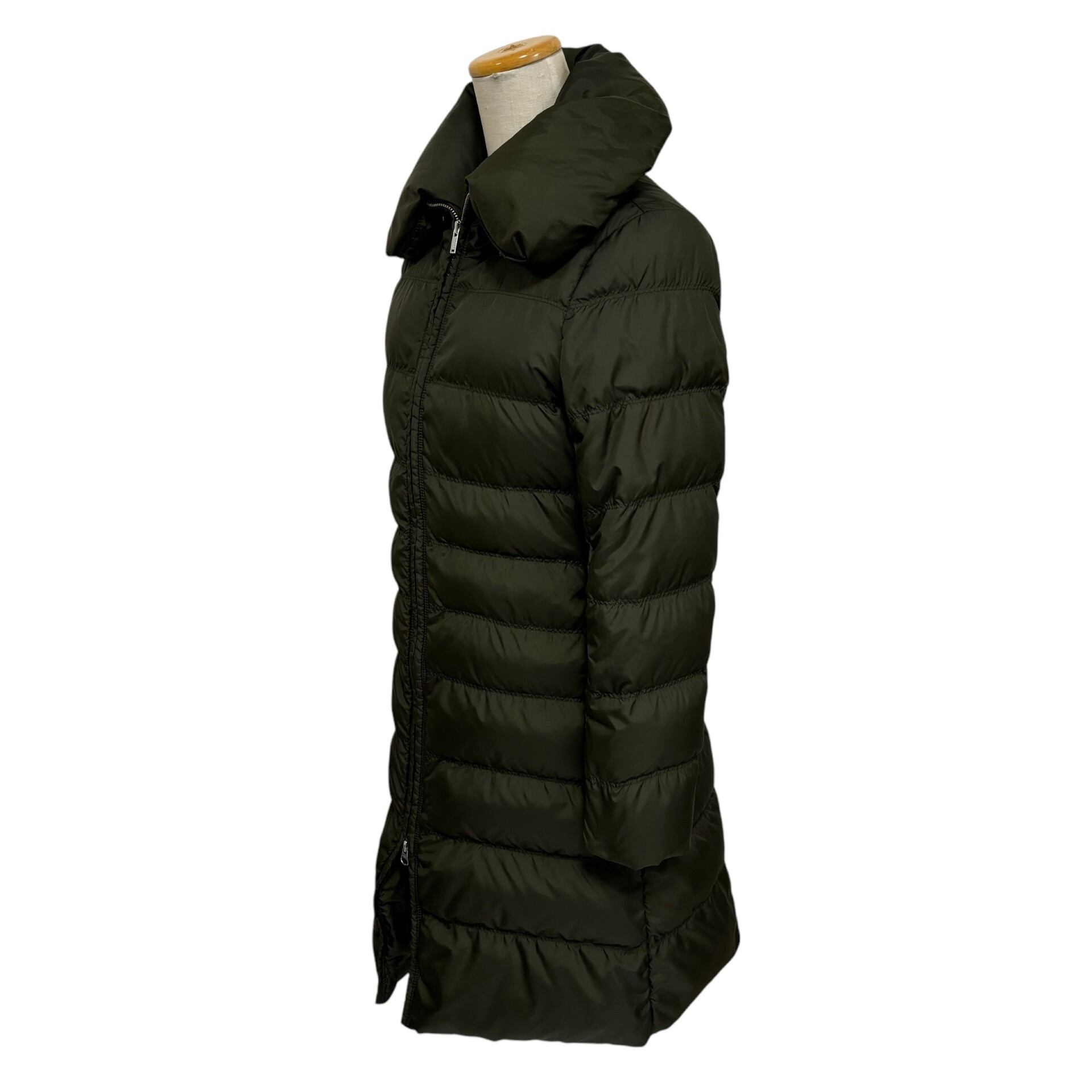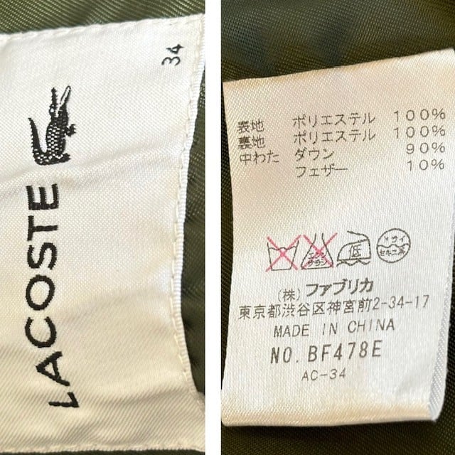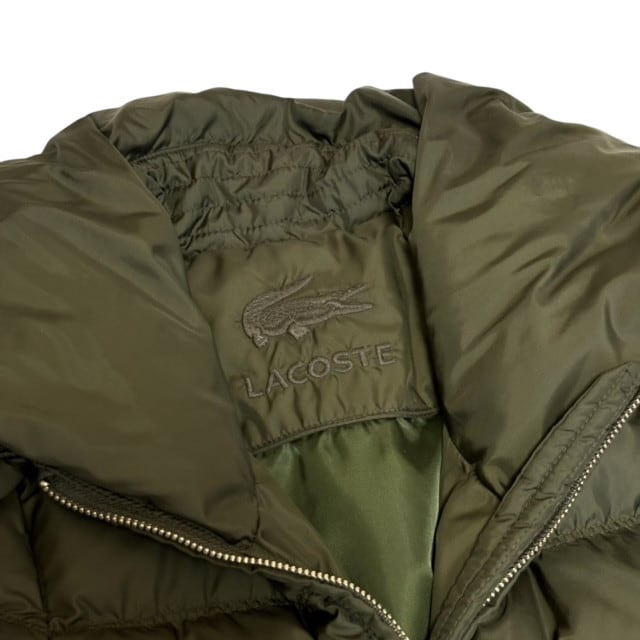 中古 ラコステ LACOSTE ダウンコート クリーニング済み モスグリーン 女優襟 レディース 小さいサイズ 34