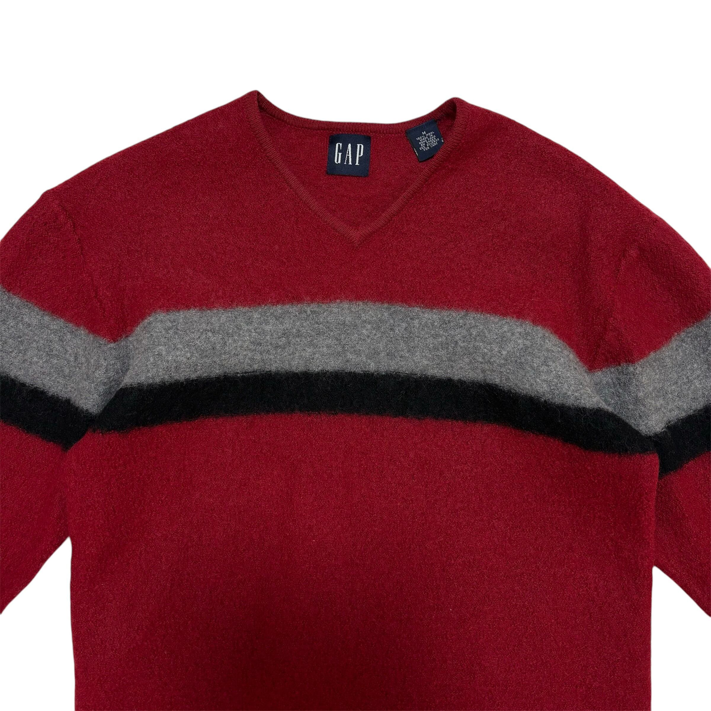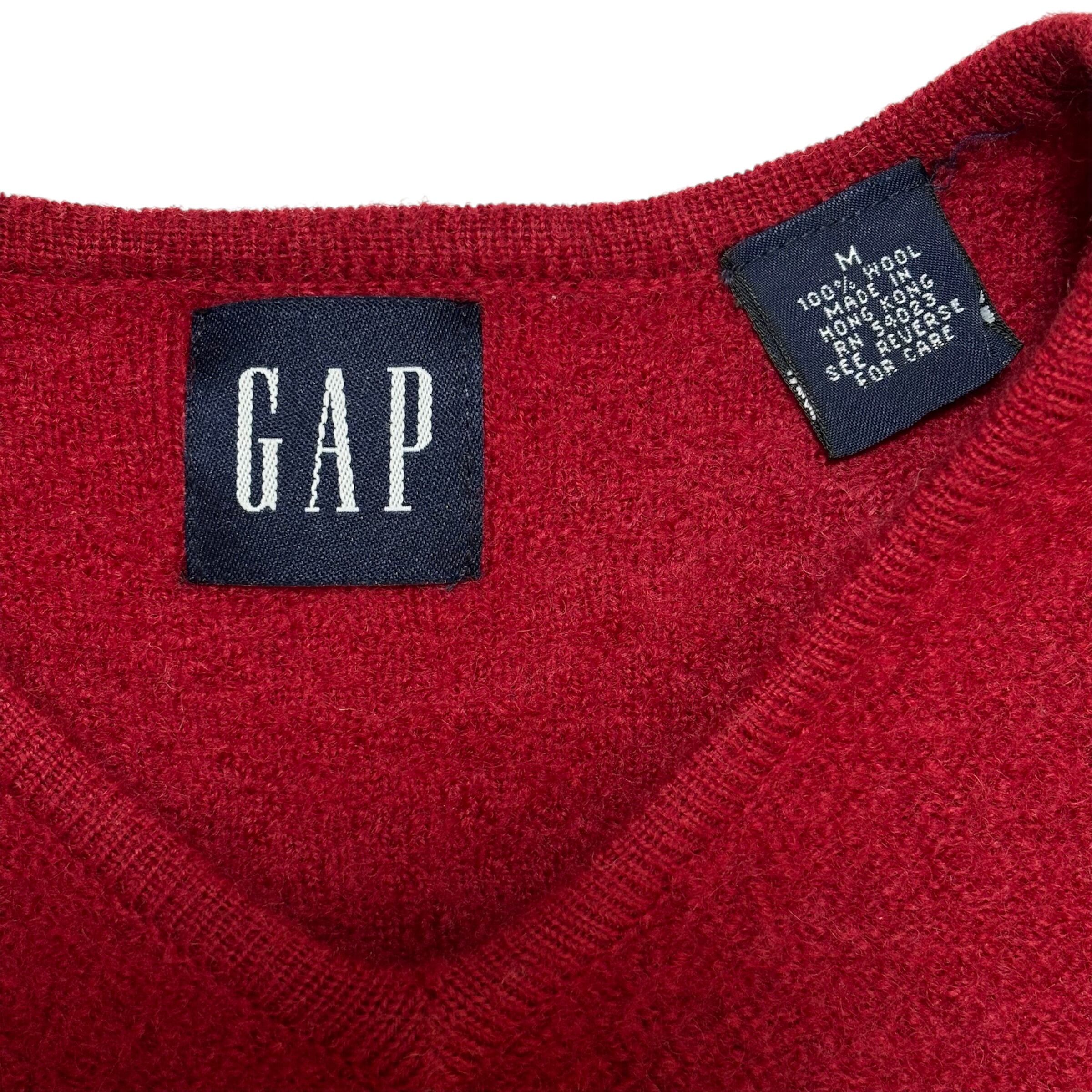 中古 オールドギャップ old GAP ブイネックセーター クリーニング済み 90s ウール レッド グレー ブラック 旧タグ レディース Mサイズ