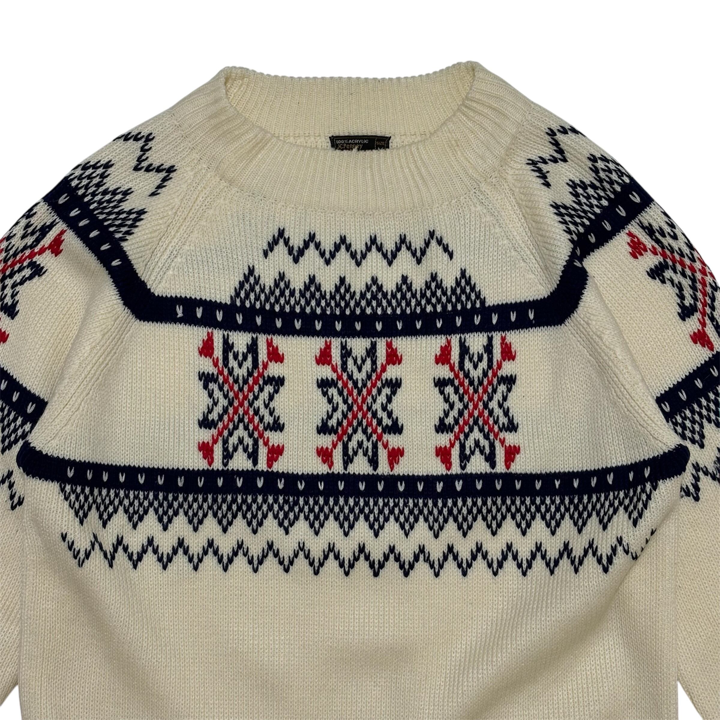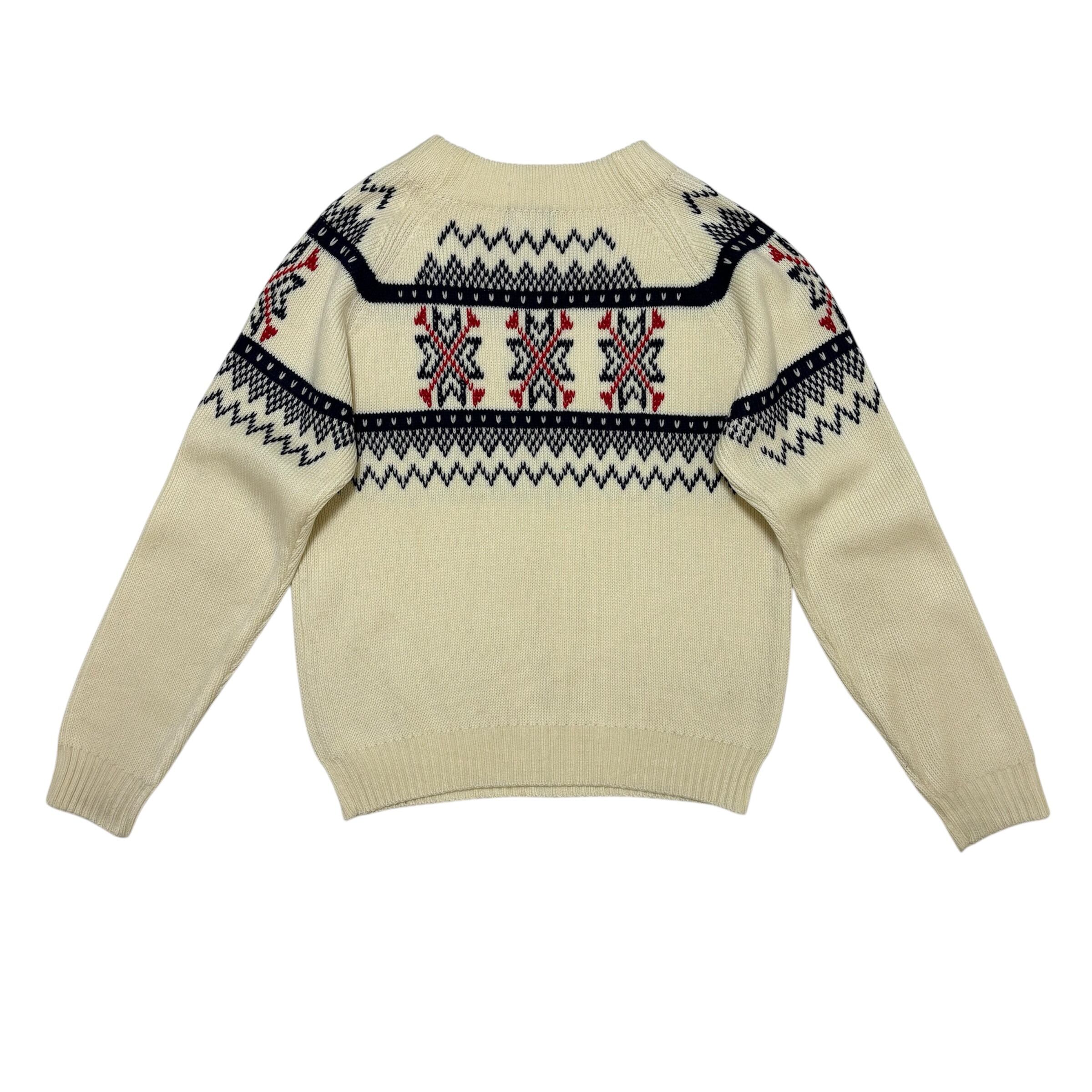 商品説明/ JCPenneyブランドから登場する、70年代から80年代ヴィンテージの雰囲気漂うノルディック柄セーター。アクリル100%の柔らか素材で着心地抜群。清潔感あるホワイトカラーが特徴。暖かく、スタイリッシュな冬のコーディネートにピッタリ。是非、レトロな魅力をお楽しみください。