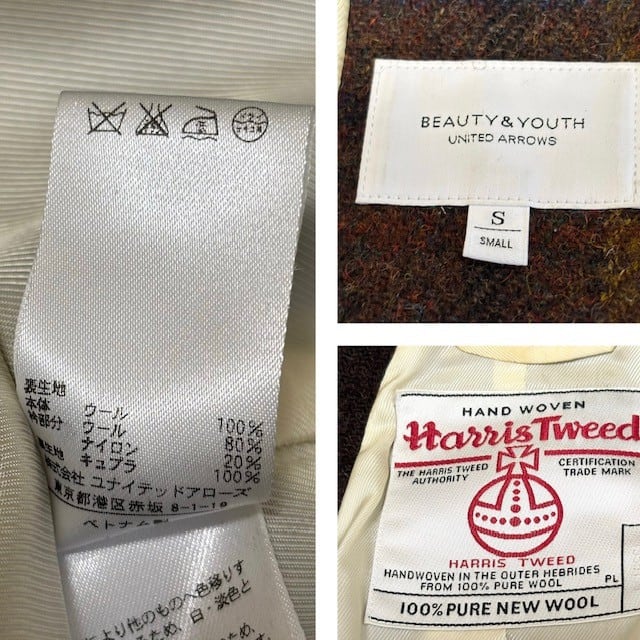 中古 ビューティーアンドユース × ハリスツイード チェスターコート クリーニング済み BEAUTY & YOUTH Harris Tweed ブラウン系統 レディース Sサイズ