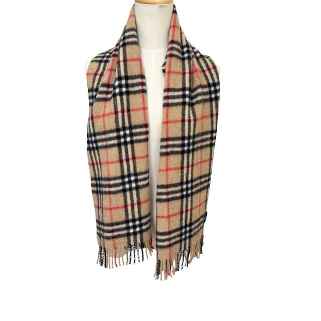 中古 バーバリーズ Burberrys マフラー クリーニング済み ノバチェック柄 カシミヤ100% イングランド製 ベージュ 男女兼用