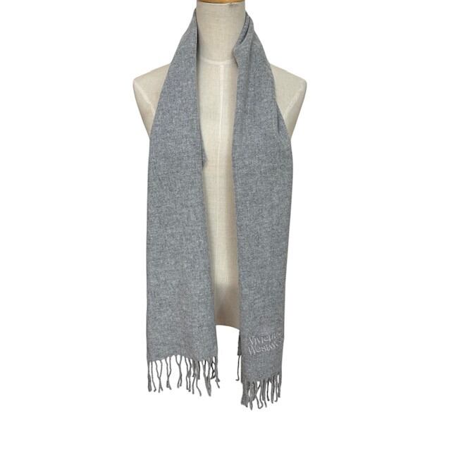 中古 ヴィヴィアンウエストウッド Vivienne Westwood マフラー クリーニング済み ライトグレー ウール100% イタリー製 男女兼用