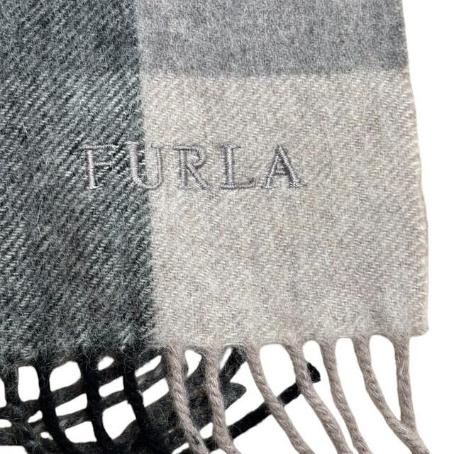 中古 フルラ FURLA マフラー クリーニング済み ブロックチェック柄 グラデーション 男女兼用