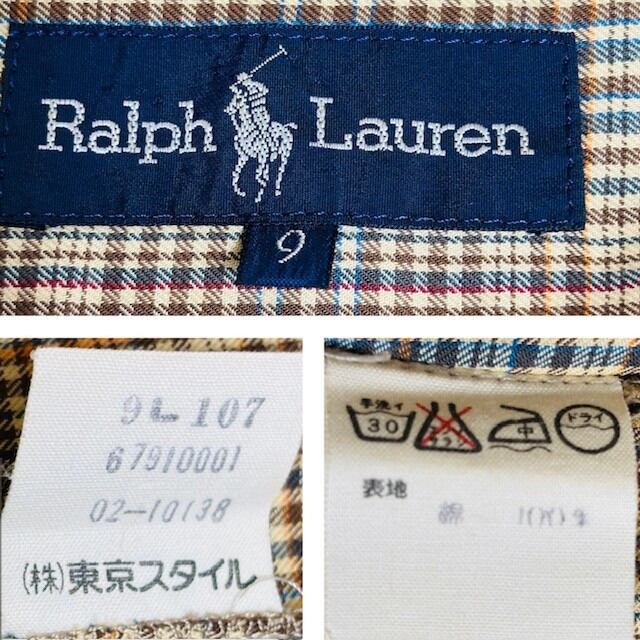 中古 ラルフローレン Ralph Lauren 長袖 シャツワンピース クリーニング済み チェック柄 ボタンダウン 東京スタイル レディース サイズ9
