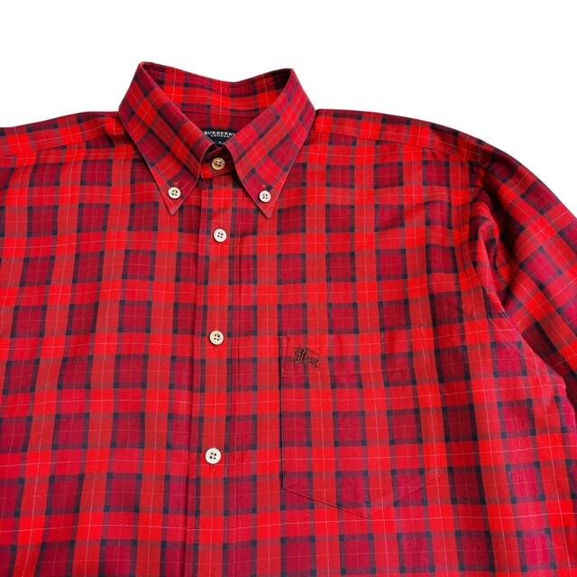 中古 バーバリーロンドン BURBERRY LONDON 長袖 ボタンダウンシャツ クリーニング済み チェック柄 赤 メンズ Lサイズ